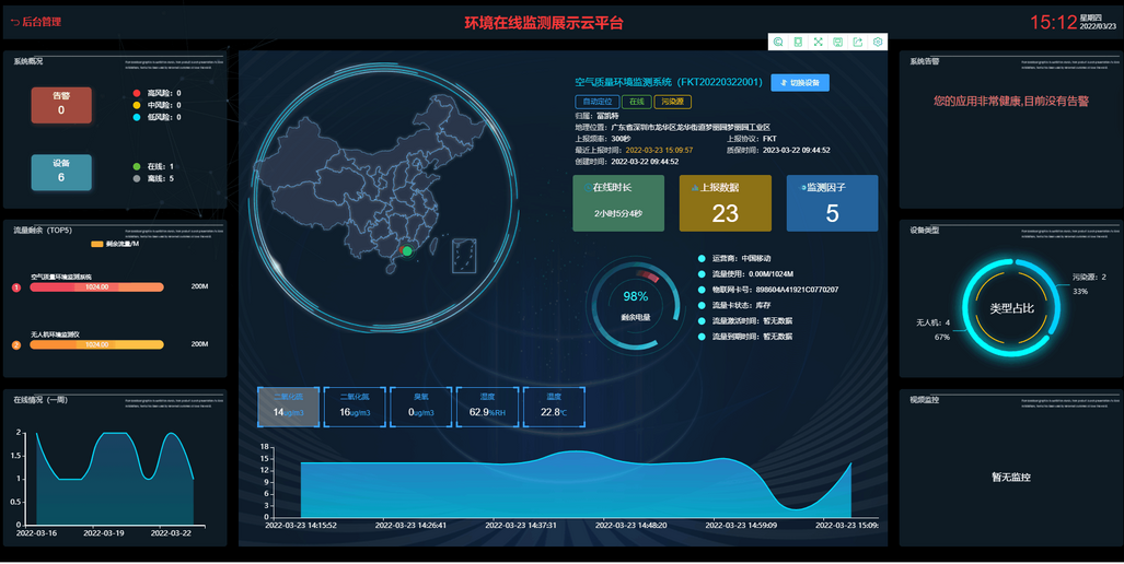 界面右邊上半部分為設備流量卡使用信息,中間為實時監(jiān)測參數(shù),下半部分為監(jiān)測參數(shù)實時走勢圖,可自主設置實時監(jiān)控數(shù)據(jù)更新時間。